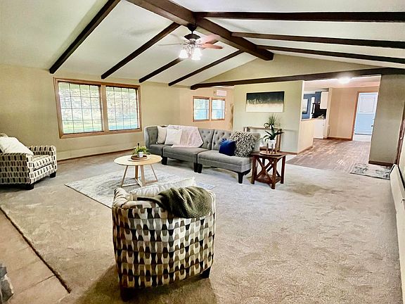 Charming one-level home! Enjoy convenient, step-free living with fresh updates throughout. Brand-new carpet in the living room with a wood burning fireplace for those colder nights. The dining area and kitchen feature stylish new vinyl plank flooring and new windows. Appliances included. Great location with the perfect balance of town convenience and peaceful surroundings located at the edge of town. You’ll enjoy a great location with easy access to everything you need. With 3 sheds, you could have a man cave, a she shed and one for storage.