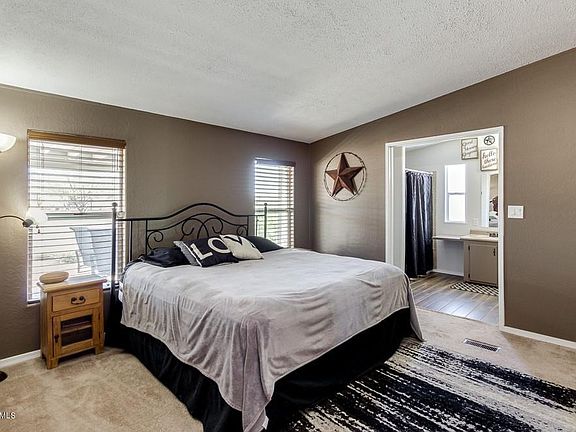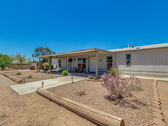 Here is a great opportunity to own a fantastic, move in ready 5 bed, 3 bath horse property. Located in Apache Junction on a level 1.25 acre lot, the home is situated at the front of the property making all of the acreage usable now. Inside the home you will find vaulted ceilings and designer paint tones throughout. Well maintained kitchen is complete with ample cabinetry, track lighting, and breakfast room. Inside the master bedroom you will find a spacious full bath with dual sinks and walk-in closet. With features like desert landscaping, permanently affixed stables, permanently affixed coral/arena, 4 storage sheds, 6 foot block wall around the property, and a large r/v gate make this is the perfect place to spread out.