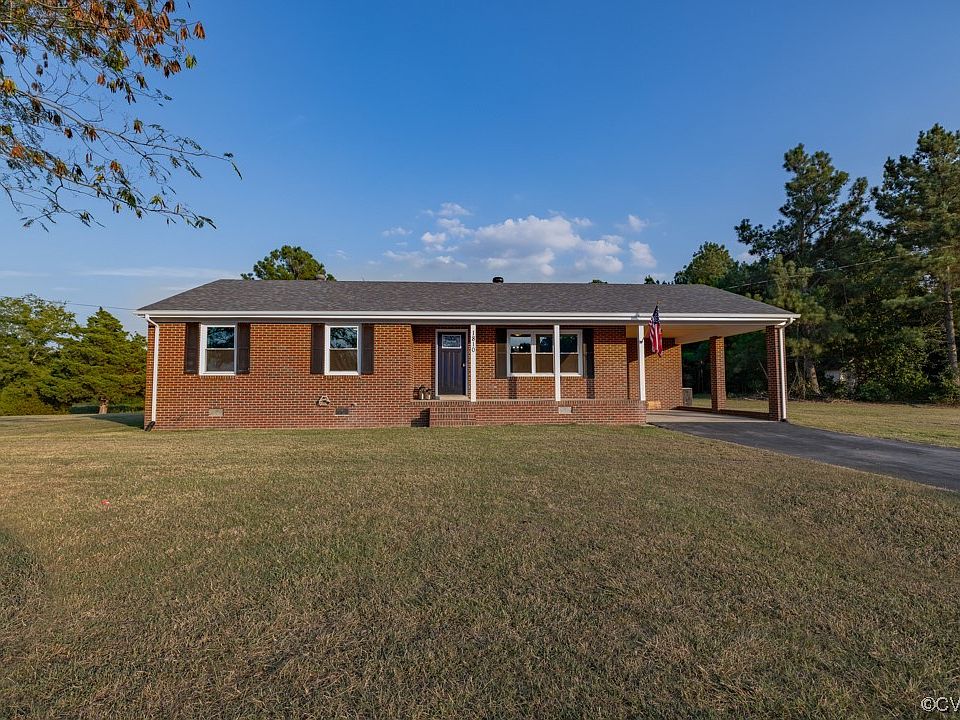 COUNTRY LIFE AT ITS BEST! BRICK RANCH, FRESH REMODEL! These are very scarce, call soon! Wonderful & spacious living areas--kitchen/dining/living open area & 20'x25' Family Room with fireplace. 3 Bedrooms, 2 NEW tiled bathrooms. NEW Roof front, NEW Flooring, New paint. Carport. Asphalt driveway, Level lot. Metal oversized garage, floor just painted + Storage Building.