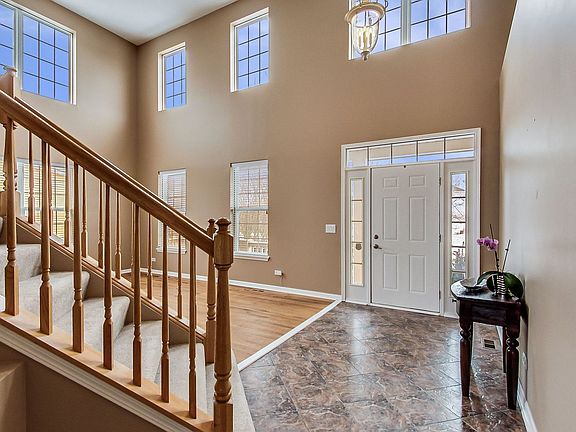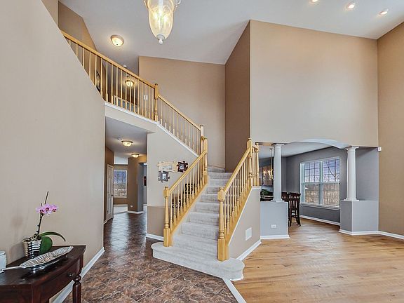 Move right in to this spectacular luxurious home on the largest lot in Nature's Ridge with panoramic views of the lake and Redwing March Forest preserve. Enter this light filled home to find cathedral ceilings in the living room which leads to the spacious dining room. Travel through the dining room to the gourmet custom eat-in kitchen with loads of cabinets, high-end SS appliances, granite counters, breakfast bar/island and italian ceramic tile. The kitchen opens up into the family room with a wonderful fireplace to cozy up and enjoy the outdoor view. A first floor bedroom off the family room can also be used as an office. Generous sized mudroom/laundry room off the 3 car garage round out the first floor. Travel upstairs via one of 2 staircases where you will find the master suite-complete with a sitting area, spa bathroom with jacuzzi tub, double sinks, separate shower and 2 huge walk in closets. 3 additional generous sized bedrooms with one of the bedrooms having an ensuite bathroom complete the second floor. The walkout basement level completely WOWS with a rec room, knotty pine wet bar, pellet burning stove, bedroom, huge spa bathroom with a 2 person shower and a bonus theater room. Tons of storage. basement has a walkout onto the patio. New Roof (2018) New Furnace (2020) New Garage Doors (2018) New Siding on the North side of the house. This is a very special home. Please walk through the home via the 3D tour and then schedule a "worry free" showing!