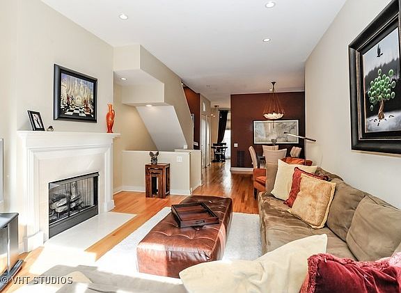 Kensington Park town home in the South Loop provides large rooms, modern features and easy access to city and suburbs. 3 Bedrooms, 3.5 bathrooms with two en suite bedrooms provides a variety of options for any buyer. Second floor boasts large living room with dining room that leads to spacious eat-in kitchen with balcony. Large windows and top of the line finishes make a stunning living area. Third floor has master suite and second bedroom and full bathroom. Fourth floor has the third bedroom with en suite bathroom and balcony plus den/dressing area with roof access. First floor has library/bonus living room with patio access and half bath. Many closets throughout the home provide ample storage. The 2 balconies plus patio give multiple options for outdoor needs. 2 car attached garage is large with extra room for storage. First time on the market, single family style living in the heart of the the South Loop.
