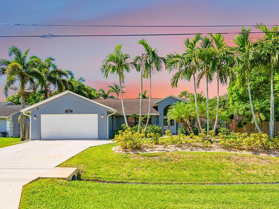 NO HOA! TWO LOTS! DETACHED GARAGE! POOL! IN-LAW SUITE! Experience Florida living at its finest in this private, fully fenced pool home with stunning curb appeal. The highlight: a huge open-concept kitchen featuring a 6x10 island made for entertaining. Step outside to your own oasis: a screened heated saltwater pool w/ a huge travertine patio & deck. The detached garage is a true bonus, half being climate-controlled and ready to serve as a home office, gym, or anything else. Inside, enjoy the flexibility of a private-entry in-law suite, and split floor plan. Additional features are a pavilion with power, 20x10 powered shed, city water&sewer, a private well for sprinklers, updated appliances, and pre-inspected w/ transferable Home Shield warranty. Near Crosstown Parkway, 95 and Tradition