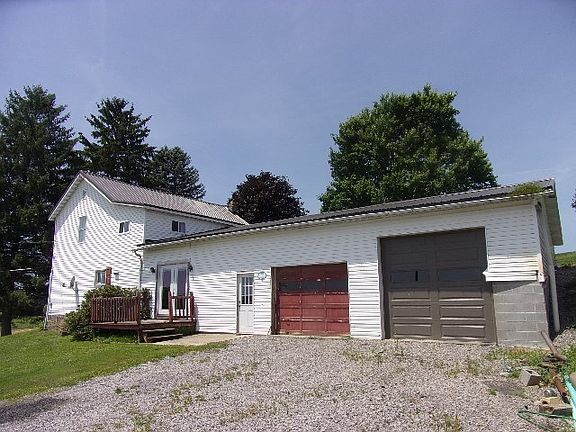 Looking for a place in the country with no neighbors? This two story farmhouse has 48.11 acres of rolling fields with a large bank barn and an oversized 2 car attached garage. Eat-in oak kitchen or dine in the separate dining room. New metal roof installed on house in 2014. Great country views and property has a grape arbor, pear and apple trees along with blueberry bushes. House is very functional, but could use a little TLC. Free gas for the buyer could be negotiated. Minutes to Route 66/28 or Route 68.