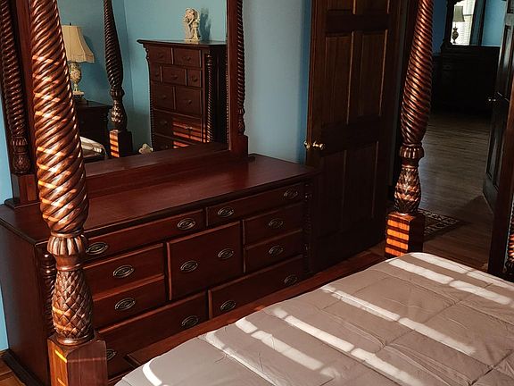 Gas log fireplaceLarge flat screen tvCustom black walnut trimHandmade walnut cabinetsFarm settingCentral heat and airLarge walk in closets