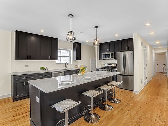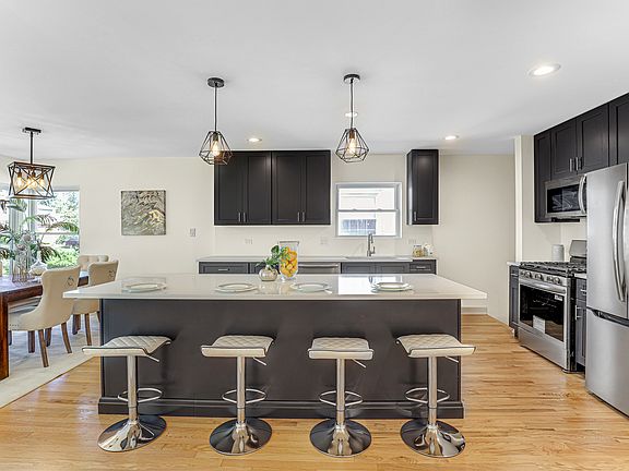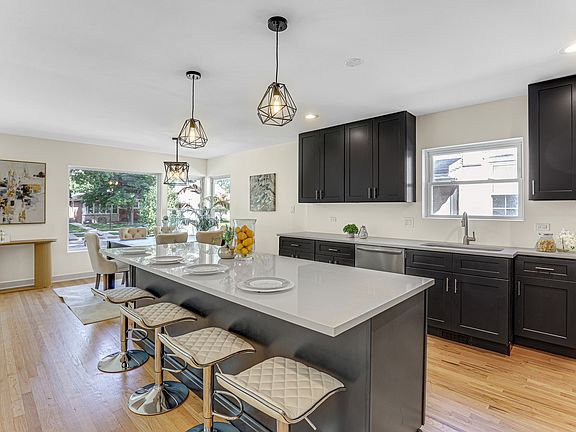 Excellent opportunity to own this beautifully rehabbed, sun-drenched ranch with an open layout perfect for both spacious living and entertaining. The main floor features 3 bedrooms and 2 full bathrooms, including a private primary ensuite. Updates throughout the home include new plumbing, a hot water tank, drain tile system, 100-amp electrical service, brand-new furnace and A/C, insulation, new interior and exterior doors, and gleaming hardwood floors. The gourmet kitchen boasts 42" soft-close cabinets, quartz countertops, and premium stainless steel appliances, while all bathrooms showcase modern finishes and fixtures. The full finished basement adds even more living space with a large family room, an additional bedroom, a full bathroom, and a generously sized laundry room with ample storage. Enjoy a fully fenced yard, perfect for outdoor relaxation or play. All renovations were completed with plans and permits, offering peace of mind and true move-in-ready convenience. Too many upgrades to list-this is a must-see home!