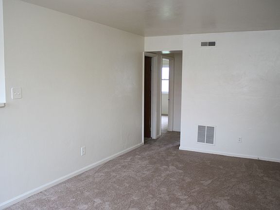Living room, large eat-in kitchen, electric stove, refrigerator, electric heat, central a/c, coin-operated laundry on-site. NEWER CARPET & VINYL IN THE KITCHEN. (NO PETS)