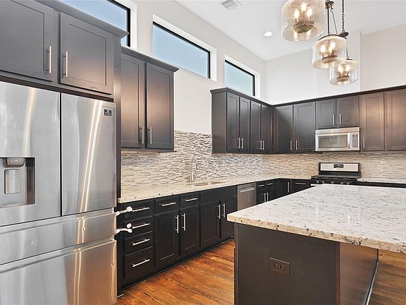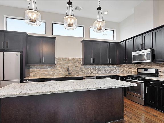 Modern finishesAbundant natural lightStainless steel appliancesGranite countertopsBeautiful islandSoaring ceilingsSpacious kitchen