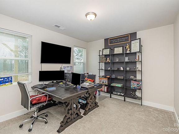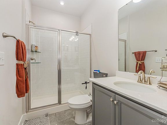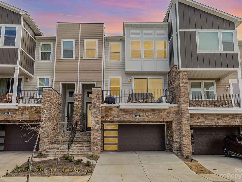 Gorgeous townhome offering low-maintenance living is conveniently located within the University Research Park! Minutes to Center City, UNCC, the Greenway and Concord Mills, Aria at the Park offers plenty of nearby dining and shopping options, as well as commuter friendly with quick access to I-85 and 485. The home boasts 3 levels of stylish living and outdoor entertaining space! Lower level provides private en-suite, rear and front deck, and drop zone just off the 2 car garage. Main living area offers open floorplan with dining area, front deck overlooking community pool! Kitchen includes massive quartz island, tons of cabinet space with walk-in pantry, back deck overlooks tree line! Just up the stairs you will find the primary suite with tray ceilings fully tiled shower and 2 walk in closets. Two ample sized bedrooms and full bath are located just down the hall and conveniently located laundry room with custom shelving!