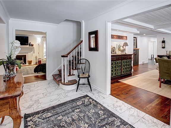 Situated on a picturesque 6 acre parcel above the Chagrin River Valley is this amazing 4 bedroom 3.5 bath colonial that has recently undergone an intensive renovation with great attention to detail, fine craftsmanship and high end finishes throughout! Home is set back far from the road surrounded by woods off a paved winding drive. As you approach the house you'll appreciate the fresh landscaping, redone covered front porch and roundabout. The State of the art kitchen is a chef's dream with a large center island, high end stainless steel appliances include a six burner range, quartz countertops, custom hood and cabinets. Kitchen leads into the spectacular dining room that features a wood coffered ceiling. Large windows draw in a ton of natural light and provide beautiful nature views all through. Mud room off kitchen with built in bench, lockers, wet bar and French doors leading to a brick patio. Charming traditional great room has a cozy fireplace, crown moldings, recessed lights and redone hardwood flooring. It also leads to the library-den through more French doors then onto the relaxing screened in sunroom. First floor owner's suite is unbelievable! It consists of multiple rooms with amenities that rival the Ritz including the most stunning spa-like bathroom that consist of a huge walk-in shower, walk-in closet, freestanding soaking tub, floating double vanities with quartzite tops and fine Italian fixtures! The exquisite bedroom is flanked with exotic wood paneled walls, built-ins that include a wet bar/coffee station, drink cooler and more! Upstairs has 3 additional bedrooms and 2 all remodeled full baths. The larger room has an on suite full bath. Lower level rec room is great for movie nights in front of the electric Napoleon fireplace. Extra deep 28' garage, outbuilding in back. Other big ticket updates are 1st FL. HVAC system 22, tankless hot water 22, roof 18, recent driveway/ drainage systems. Close proximity to C.C. Hilcrest Hospital. A must see!