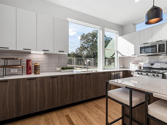Welcome to 1810 Yates St, a stunning new construction by Parra Homes, one of the pioneering builders helping shape the transformation of Houston’s Fifth Ward. This 3-bedroom, 2.5-bath home offers first-floor living with an open layout, a private driveway & gated front yard. Inside, discover a bright kitchen with quartz countertops, two-tone flat-panel European-style cabinetry, soft-close drawers, stainless steel appliances & a large picture-frame window filling the space with natural light. Real red oak hardwood flooring runs throughout with zero carpet. The living area opens through sliding glass doors to a covered patio perfect for relaxing or entertaining. Upstairs features an office nook ideal for remote work & a spacious primary suite with vaulted ceilings, a seating area, spa-like bath with floating vanities, soaking tub & frameless shower. Conveniently located minutes from Downtown & East River. No HOA & one of the best values for new construction in the area.