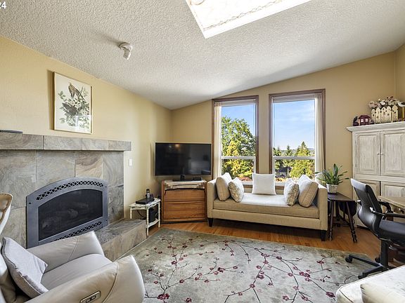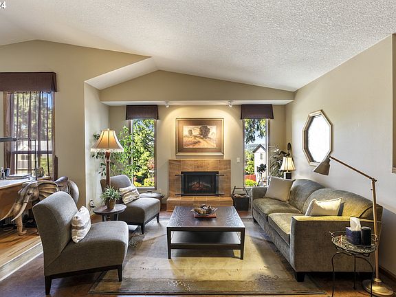 Immaculately maintained contemporary home featuring territorial and mountain views from the spacious living area and family room. This 3 bedroom and 2 bathroom home is replete with many upgrades including oak, cork, and heated limestone floors, quartz countertops, unique stone surrounds on the two fireplaces, and a handmade art glasswindow in the living room. The open layout is ideal for entertaining. The house is set on a large, private lot with mature landscaping and professional outdoor lighting. The backyard is especially beautiful and includes a site-built garden shed. Conveniently located in the highly desired West Linn school district just 20 minutes to downtown Portland, 25 minutes to PDX, and 5 minutes to recreation access on the Willamette and Clackamas Rivers. Move-in ready, this gem is a must-see!