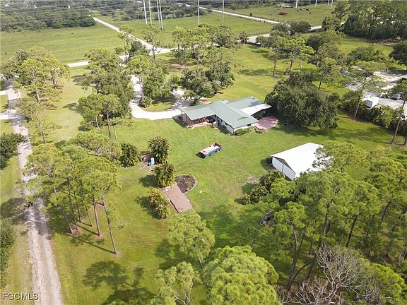 Check out this beautiful 4.84-acre property in North Fort Myers, located on a paved, county-maintained road. The yard is stunning, featuring trees, a gravel circle drive, plenty of parking, a large 27x40 workshop in the back, and a creek at the far end of the property. There's ample room for toys or horses, along with a spacious carport. This home is ready for a new owner to make it their own and enjoy the peaceful country lifestyle. New LIFEproof vinyl floors have been installed in the bedrooms, living/dining rooms, and closets. The original garage has been converted into a bonus room, bedroom, game room, or office with a closet. The laundry room, now under air, includes a large pantry/walk-in closet area. The property also offers a screened lanai, an outdoor patio area, and a versatile carport for parking or hosting events. Located in a fantastic area of NFM, close to the Lee County Posse, this home is just a short walk from the rodeo. A must-see!