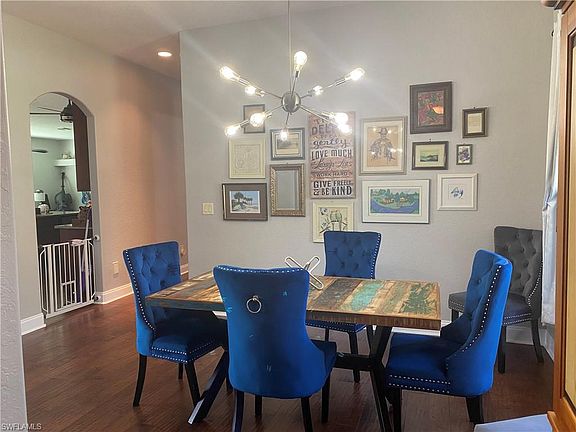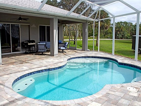 This home is perfect for anyone who craves a quiet lifestyle tucked away in a private non-gated neighborhood. Located off Bayshore RD and I-75, this gorgeously upgraded & spacious home is close to Downtown & RSW International Airport, but far enough off the beaten path to avoid the hustle and bustle. Nestled between horse farms and beautifully kept neighboring homes, you'll love the wooded areas and lake view from the private and relaxing pool area. This home comes with a whole home generator, 8-foot doors, wide moulding, solid wood flooring throughout, newer roof, upgraded fixtures, central vac, new water heater, Samsung black stainless appliances, custom cabinetry with soft close cabinets and drawers in both the kitchen and bathrooms! Large & super functional kitchen with island & tons of storage. You'll love the split floor plan when working from home or when guests arrive. The living and dining areas are open and spacious. Saltwater pool was recently installed with pavered deck & pool cage creating a beautiful outdoor entertaining space with a stunning view of the lake. This home is located next to an easement which is not buildable so it feels like your super-sized yard.