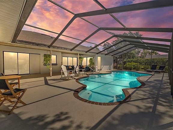 Screen-enclosed pool areaGranite countersTwo separate living spacesSplit-bedroom layoutPrivate peaceful retreatMature treesKitchen with dining island