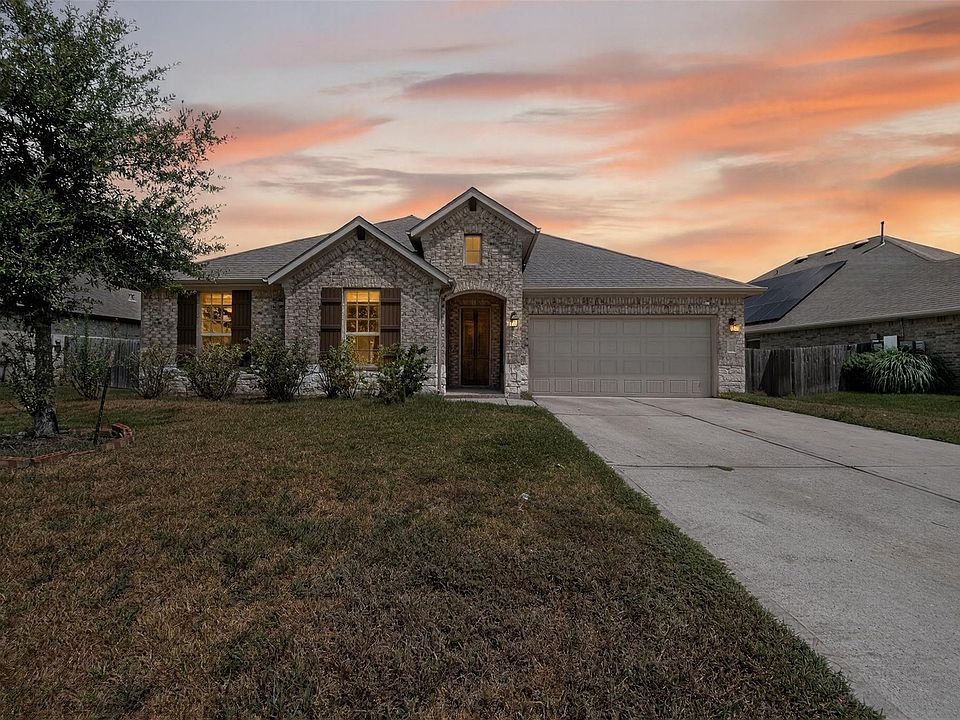 Stunning One-Story D.R. Horton Smart Home packed with upgrades! This 4-bedroom, 3-bath home includes a private study with French doors perfect for a home office. The open-concept layout features a gourmet kitchen with 42" cabinets, under-cabinet lighting, a 10" deep undermount stainless steel sink, spacious island, walk-in pantry, and upgraded Samsung stainless steel refrigerator. Includes washer and dryer. Luxury vinyl plank flooring flows throughout, with carpet in one bedroom and laminate in the others. The garage includes a built-in workbench, and the backyard boasts a storage shed and a large covered patio. Additional features include a sprinkler system, tankless water heater, and doorbell camera. Located in a community with a recreational center, pool, and lake access plus close proximity to shopping, dining, and entertainment. This home truly has it all!