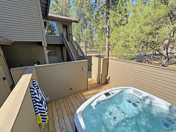 Discover this charming Sunriver home located on the north end of the community. Featuring an open floor plan, the kitchen boasts granite countertops and flows into a great room with a gas fireplace and hardwood floors. A newer sunroom adds a bright, inviting space - perfect for work or relaxation. The reverse living layout has the primary bedroom upstairs, while two additional bedrooms are situated on the lower level. Recent upgrades include air conditioning and a hot tub w/ enclosure. Two-car garage to store your toys, plus a large storage area off the back deck. Conveniently located near the north grocery store and providing easy access to Cottonwood Road and Highway 97, this residence is nestled on a peaceful cul-de-sac that backs onto a common area. A bike path leads you directly to Sunriver Village, SHARC, and Fort Rock Park. Begin creating lasting memories in this delightful Sunriver home.