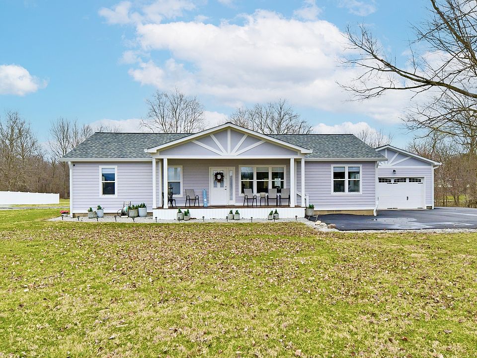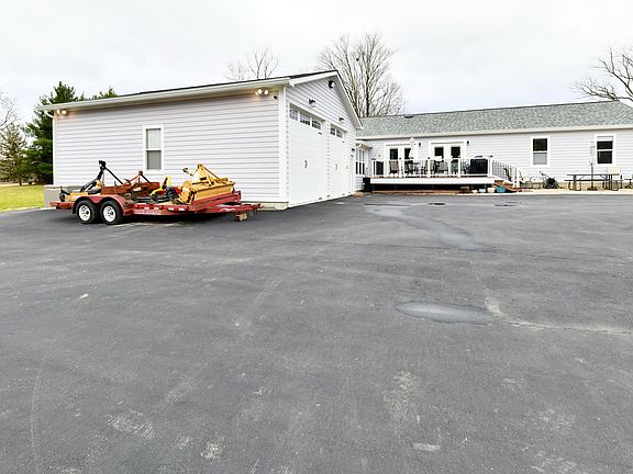 Welcome to this stunning, completely renovated home nestled on 2 full acres in the heart of beautiful Westfield! This move-in-ready property boasts 3 spacious bedrooms and 2.5 luxurious bathrooms, offering a perfect blend of modern design and comfort. The heart of the home features a gorgeous kitchen with granite countertops, a 4x8 island with a farmhouse sink, and ample seating for four at the bar. The custom coffee bar with its own sink adds the perfect touch for your morning routine. Throughout the home, you'll find waterproof vinyl plank flooring, soft-close drawers, and marble countertops in the bathrooms, including a primary suite with a walk-in shower and custom organizer in the walk-in closet. The expansive full basement offers tons of storage space, while the temperature-controlled 4-car attached garages provide plenty of room for all your vehicles and toys. Two of these garage spaces are RV-sized, perfect for storing larger vehicles or recreational equipment. The garages are also equipped with master lock sidewinder openers for space-saving efficiency. The home features a library with hidden storage and built-in shelves, plus window coverings specially made for the space, adding both style and function. Step outside to enjoy the tranquility of Little Eagle Creek winding through the property-perfect for fishing or simply relaxing by the water. The new gravel driveway and vinyl privacy fence ensure privacy and curb appeal. Plus, with a whole-house generator, you'll have peace of mind during any storm. The dining room opens to a large deck with two double French doors, ideal for entertaining or enjoying the serene surroundings. All doors are wheelchair width, except the primary bedroom door. This property truly feels like a new home-don't miss your chance to own this one-of-a-kind gem! Back on the market due to buyer unforeseen circumstances. No appraisal or inspection was performed.