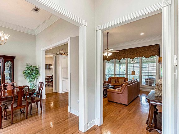 Are you looking for a 4 bed/3 bath well maintained home that has never flooded in the Jefferson Park neighborhood? Keep reading! This home is located on one of, if not THE best lot in the neighborhood. It is directly across from the neighborhood pool and just in front of the neighborhood park past the fully fenced in yard. This lot is actually the biggest lot in the neighborhood at 0.3 acres! Pulling into the home you’ll notice a charming front elevation, new landscaping, and extra parking to the side of the two car garage, as well as a utility room! Walking in the front door you’re greeted with tall ceilings, wood floors, very large windows looking out to the beautiful backyard! The kitchen offers granite counter tops, extra lighting, and a spacious breakfast room! The master bedroom is big enough to fit a California king sized mattress with night stands on each side! It has a very spacious en suite bathroom with dual vanities, a large closet, walk in shower, and separate tub. The guest rooms all feature walk in closets and are very spacious! Two of the guest rooms are connected through a charming jack and Jill bathroom. The final guest room features it's own full bathroom on that wing of the house! The backyard offers a covered patio and pulldown screens for plenty of entertainment options, not to mention how it cools off the inside of the house and adds plenty of shade! The fence is lined with beautiful crepe myrtle trees installed by the owner! This home has only had one owner and has been meticulously taken care of! The neighborhood offers a great swimming pool, and a kids playground. This home has never flooded and is located in flood zone X! You’ll quickly see why Jefferson Park is such a desired neighborhood upon entering, so schedule your showing today!