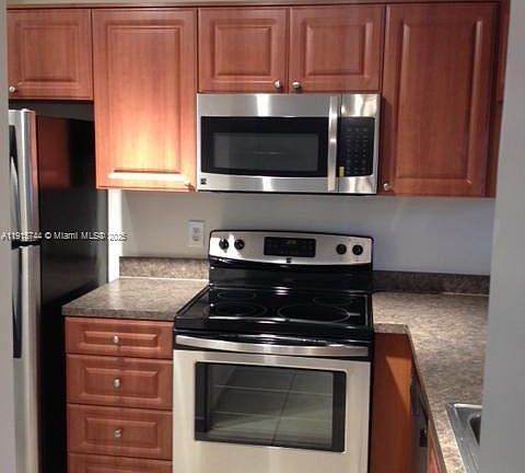 Screened balconyWasher and dryerStainless steel kitchen appliances