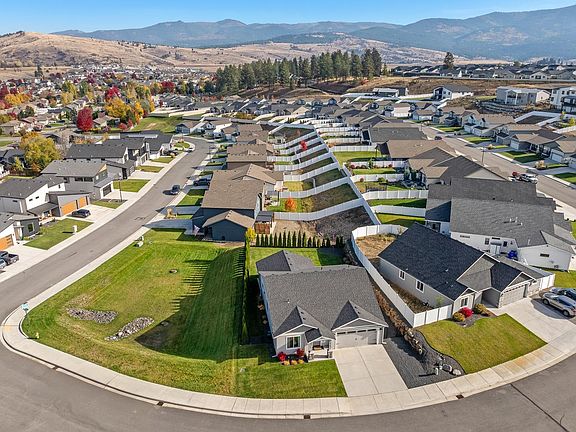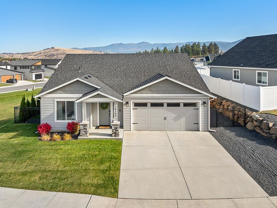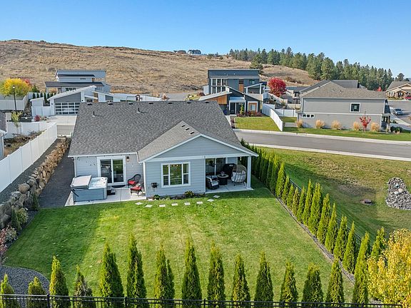 Better than new rancher with zero-step entry from the garage and only one step to the covered front door. Enjoy single-level living with open layout and a large, fully fenced yard with privacy landscaping, mature bushes, and mountain views. The dream kitchen features granite countertops, undermount sink, stunning island and tile finishes. Relax on the covered back patio or soak in the hot tub while taking in the mountain views and stunning sunrises and moonrises. Upgrades include custom entry and mudroom sitting benches, large fireplace, fully tiled shower, added windows, and a slider off the primary suite. Large main bedroom with walk in closet, additional closet and attached bathroom. Fully tiled shower, counter-height vanity with double sinks and linen closet. Light, bright, and modern with only one neighboring lot on the street for added privacy. Prime location close to shopping, Saltese Uplands for great hiking or biking, and easy freeway access!