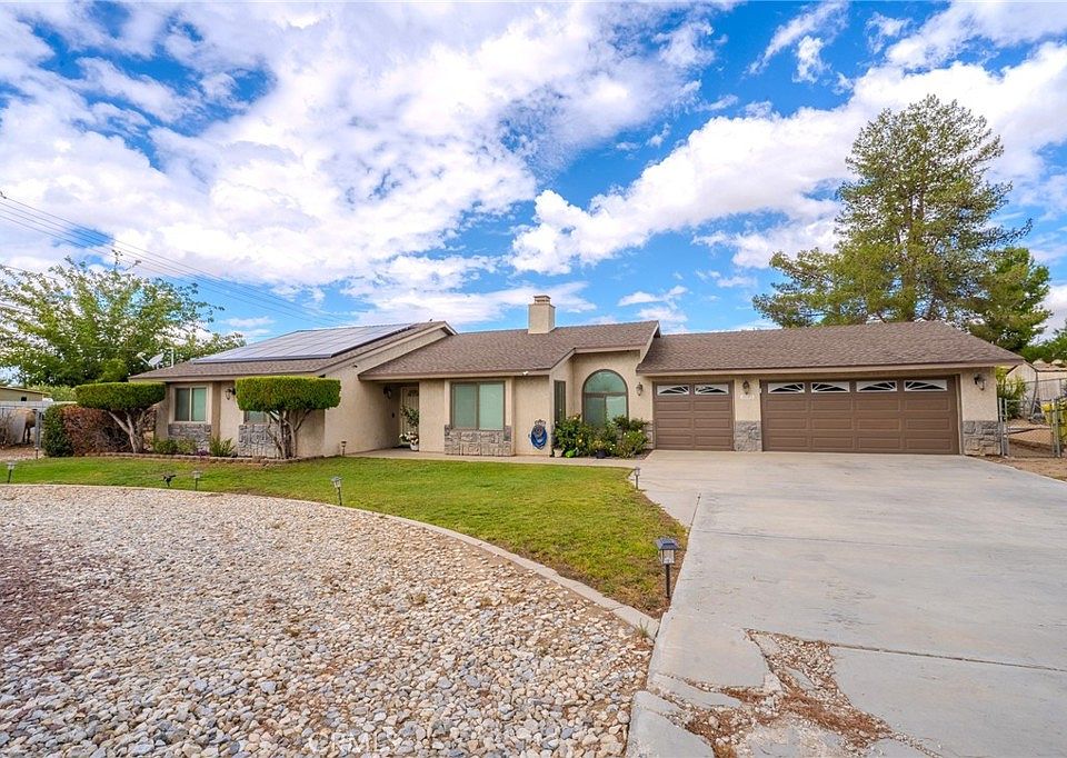 Welcome to this charming single-story home in Hesperia, set on a spacious .65 acre horse property lot. The property is fully fenced with wrought iron and block wall, surrounded by mature shade trees, lush landscaping, and features leased solar panels to help you save for years to come, all paired with a convenient 3-car garage.