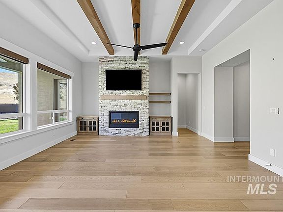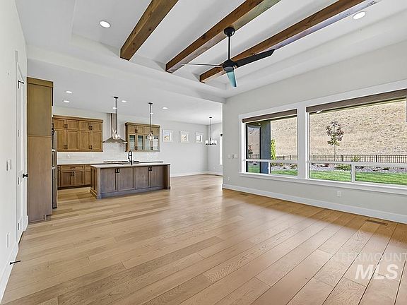Nestled among the foothills with no rear neighbors, this Avimor retreat pairs wide-open views with refined, luxury living. Expansive skies, rolling hills & endless horizons create a daily backdrop of Idaho beauty, while an east-facing backyard ensures privacy & tranquility – there is no better spot for morning coffee or sunset hosting. The 4-car garage w/ 41’ deep RV bay is ideal for the adventurer. Store your camper & outdoor gear, quickly escape to the mountains on nearby Hwy 55, then return home to relax & recharge. Tall ceilings, engineered hardwood floors & abundant windows give light and elegance to the open layout. The great room’s wood beams & stone fireplace add warmth, while the chef's kitchen blends luxury & function with quartz counters, high-end appliances & island for everyday meals or lively gatherings. Single-level living with private primary suite, 2 guest rooms & office. Enjoy trails just beyond the back door & Avimor’s full lifestyle: pool, clubhouse, fitness, courts & neighborhood brewery.