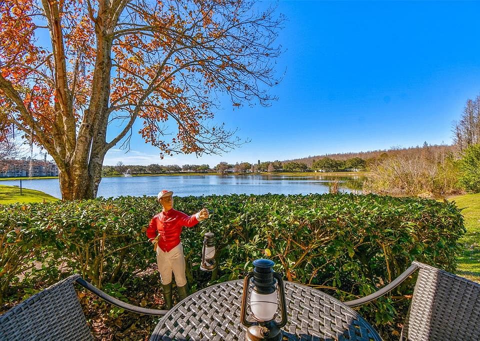 Luxurious first floor, 2 bedroom 2 bathroom waterfront condo loaded with upgrades nestled in the upscale community of Lakeview at Calusa Trace. The lushly landscaped entry will greet you as you arrive to this bright first floor unit boasting wood look tile and sliding glass doors in the living area, allowing plenty of natural light to flow throughout. These doors lead to your own private patio with sweeping views of the beautiful lake and conservation area. You will enjoy relaxing in this wonderful outdoor living space. The living room is extremely spacious, yet cozy. The kitchen offers SS appliances, and a breakfast bar overlooking the breakfast nook. This delightful home is perfect for entertaining family and friends. The Master bedroom features en suite bath and a walk-in closet. The secondary bedroom and bath are also both bright and offer ample space. New AC, Water Heater, appliances and flooring throughout. An additional bonus includes a storage unit and 1 car garage, with the possibility of purchasing a 2nd garage at an additional cost. Calusa Trace Community offers many amenities, such as a pool, tennis courts, fitness center, and more! Enjoy the convenient central location, close to shopping, restaurants, golf, schools, and Veteran's Expressway, with easy access to Downtown and Westshore!