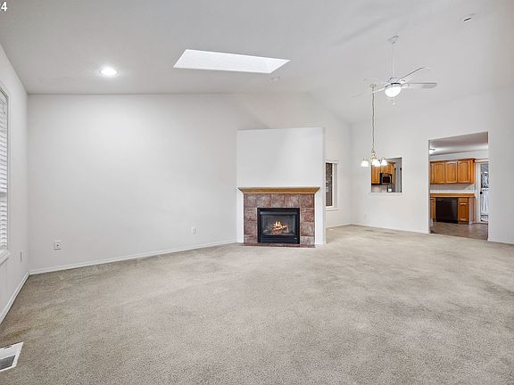 - Features: Fireplace, Living Room Dining Room Combo, Vaulted Ceiling, Wallto Wall Carpet