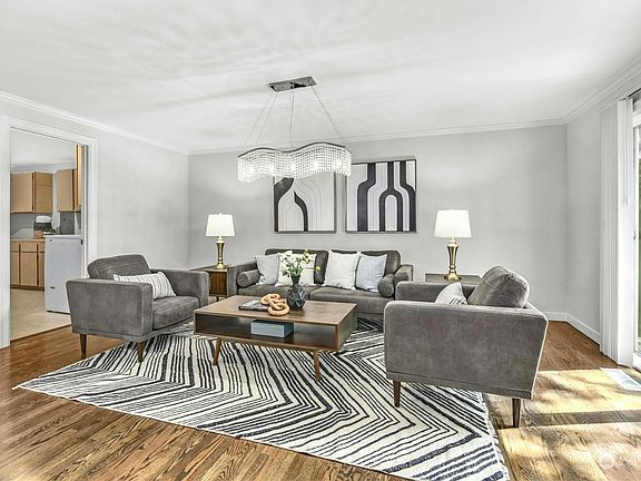 Welcome to this beautifully updated open floorplan rambler! Bright and open living and dining areas are adorned with hardwood floors and crown molding. The updated kitchen has a large granite island with built-in wine cooler and a 4-burner gas range, range hood and stainless-steel appliances. Slider access leads to the fully fenced-in back yard with a large deck, perfect for entertaining, and a beautiful garden. The inviting primary suite includes an updated 3/4 bath and walk-in closet. Three additional spacious bedrooms with large closets and an adjacent full bath. The spacious laundry room features cabinets and ample counter space. Enjoy the comfort of central A/C and a converted garage with additional bedroom or flex space. Pre-inspected