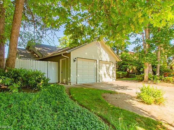 Located on a quiet street but in the vicinity of shopping, restaurants and schools, you will enjoy the setting of this special home. The lovely, shaded walkway and entry welcomes you to single level living. The large, vaulted living room with a bay window is just the room for quiet conversations and social events. The large great room has gleaming hardwood floors and wood burning fireplace plus an open kitchen and dining area. Also, it includes a slider to the very private patio and overlooks the fully fenced back yard and a second patio. The primary bedroom boasts double closets, a window seat and a bathroom. Three-year-old heat pump, newer kitchen appliances, and washer and dryer are included. Inviting outdoor spaces with two patios topped with pavers are for enjoying our summers. The outdoor area includes a newer, deluxe shop/garden storage building and a covered barbeque area. A greenway canal behind the property line gives extra privacy to the yard and home.