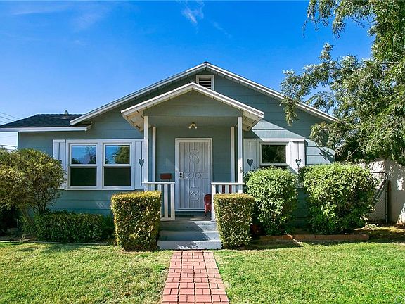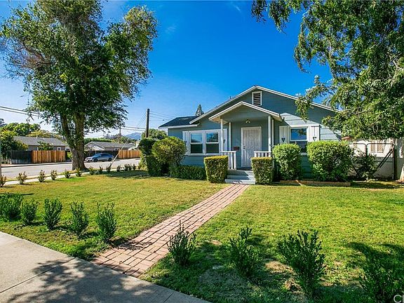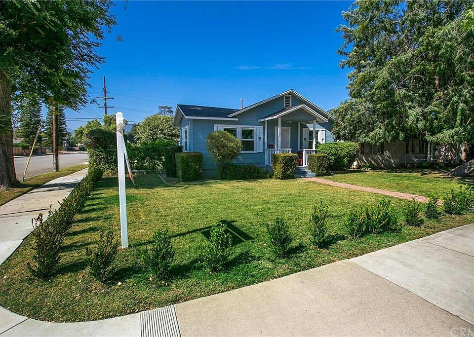 SPACIOUS BUNGALOW W/DETACHED BONUS ROOOM ON A SPACIOUS CORNER LOT. Situated on a deep lot, this home offers a manicured front landscaped yard & a cozy front porch. Inside you'll find newly refinished, original hardwood floors that run throughout all living areas & bedrooms, newer Milgard windows, a spacious family room, a dining area & a kitchen w/stainless steel appliances, plenty of cabinet & counter space. A back mud room offers a stackable washer dryer setup & a access to the backyard. Two bedrooms each with ceiling fans & a completely remodeled bathroom w/travertine floors, custom shower w/tub, pedestal sink & storage. An alley provides access to a full two car garage & to a gate that enters into the backyard. There is also a detached space that is approximately 250 extra square feet which provides a perfect bonus room with a sliding door opening toward the backyard area. The backyard offers a serene garden area with grass, colorful flowers, a private seating area, a second grass area and a side yard. There is also vehicle access into a center driveway of the backyard which offers gated access. This excellent location is walking distance to University of La Verne, Old Town La Verne and is close to shops & freeways.