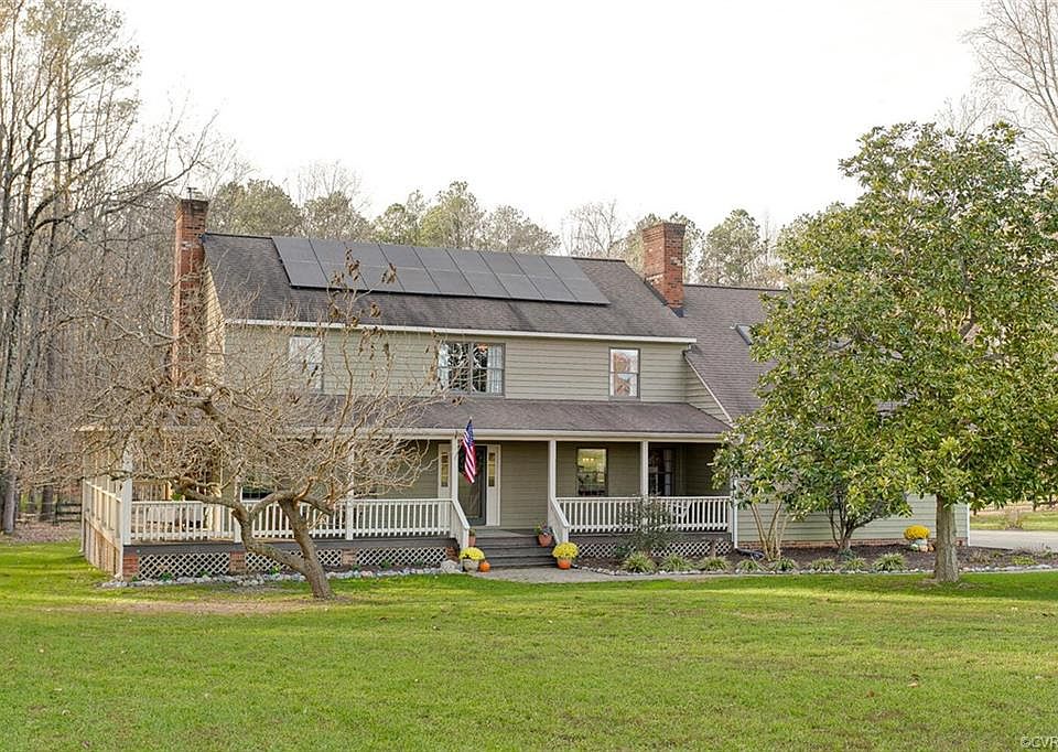 Charming 2-story farmhouse with ideal floor plan for casual and comfortable family living located on 10 park like acres zoned Agricultural. Interior has beautiful triple member moldings, chair rail, 6-panel wood doors, hardwood/tile floors, skylights and 3 fireplaces. First floor offers large foyer with coat closet, huge family room with brick fireplace/wood stove, dining room (presently used as a game room) with large bay window, kitchen with center island, pantry, morning room with brick fireplace and two large windows, large utility room with entrance to oversized 2-car garage with work area and bench. The second floor has four bedrooms, two large primary bedrooms with adjoining baths, hall bath, lots of closet/storage space as well as walk-up stairs to large attic. Outside, enjoy the huge wraparound porch with swing, deck, fire pit, tree house and 2-stall horse barn with tack room and shed located on approximately 1 acre of fenced pasture. Convenient to Route 288 and minutes to shopping, dining and downtown. Owners installed the Solar Panels approximately 2 years ago and received Certification as an Energy Efficient, High-Performing Home.