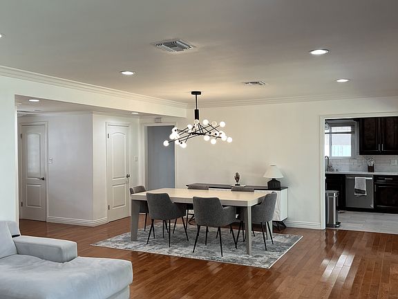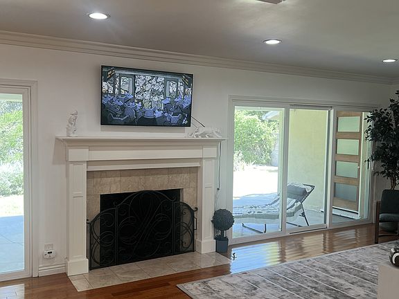 Step inside to find hardwood floors throughout, recessed lighting, crown moldings, and a bright, open-concept living/dining space. Two oversized sliding glass doors bring in natural light and lead to a lush, ultra-private backyard with serene mountain views your own hidden escape.