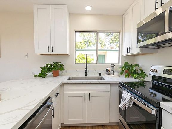 Welcome to your new sanctuary in the heart of Pepperwood Meadows. This upper unit 2 bedroom, 2 bath condo boasts a stylishly renovated interior, offering a seamless blend of luxury and functionality. Step inside to discover brand new flooring that adds warmth and sophistication to every step. The kitchen has been completely revitalized, showcasing gleaming quartz countertops and a sleek stainless steel sink, complemented by all-new stainless steel appliances that elevate your culinary experience to new heights. Both bathrooms have been meticulously upgraded, exuding a spa-like ambiance with contemporary fixtures and finishes. The addition of recessed lighting throughout enhances the ambiance. Prepare to be captivated by the spacious living room, adorned with tall vaulted ceilings that amplify the sense of space and airiness. Natural light pours in through plenty of windows, illuminating the interior and highlighting the impeccable attention to detail in every corner. Enjoy access to a refreshing pool, perfect for unwinding on sun-soaked afternoons. Say goodbye to tedious trips to the laundromat, as the community offers convenient on-site laundry facilities. Parking is a breeze with a covered parking space included, and the owner currently covers the cost of an additional parking spot for added convenience. Don't miss out on the opportunity to make this meticulously renovated condo your own. Schedule a showing today!