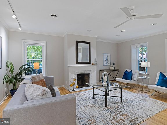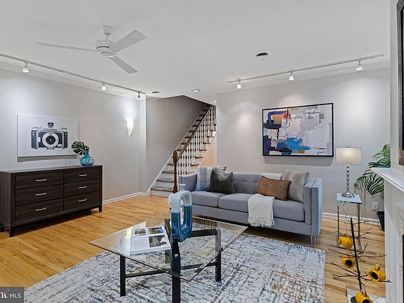Timeless elegance awaits at 1811 Fitzwater Street, Unit E, a 20-foot-wide corner townhome tucked in a private courtyard in the heart of Graduate Hospital. This classic Philadelphia home blends charm and modern amenities, including gated parking and a massive roof deck with skyline views.  The light-filled living room features refinished oak hardwood floors, a marble-mantel fireplace, and crown molding. The open kitchen shines with white shaker cabinetry, quartz countertops, stainless steel appliances, a farmhouse sink, and a center island, flowing into a dining area with a modern chandelier. A walk-in pantry, powder room, and full utility/laundry room complete the main floor.  Upstairs, find three bedrooms and two renovated baths. The spacious primary suite offers hardwood floors, a wall of closets, a walk-in closet  and a modern master bathroom with walk-in shower. Two secondary bedrooms include hardwood floors, large windows and access to a stylish hall bath. The largest secondary bedroom features a stately marble mantel fireplace.  Additional highlights: a semi-finished basement perfect for office or gym, ample storage, a brick-paved front patio, secluded from the street, and secure parking with Pemberton St. access. Steps from local favorites like Loco Pez, L'anima, Pub & Kitchen, La Sera, Sabrina's, Sonny's and much more.
