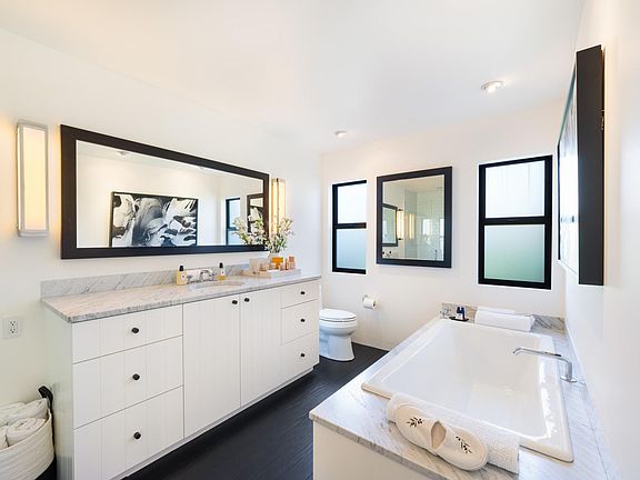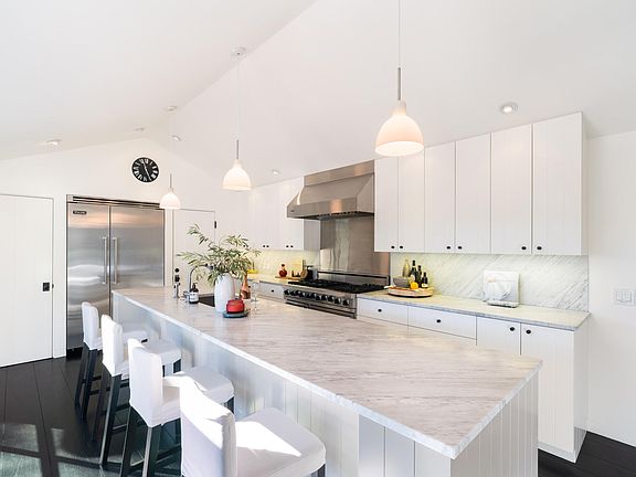 Nestled in St. Helena's Westside, this Contemporary marvel by architect Shay Zak strikes a balance between town and vineyard living. A serene courtyard, adorned with ancient olive trees, invites social gatherings or relaxation on the porch. Short distance from downtown yet close to vineyards, this 1500 sq ft home charms with vaulted ceilings, wooden floors, and outdoor access from every room. Glass doors connect the living and dining areas to the courtyard. The Viking-equipped kitchen with a marble island links to a covered courtyard. Two roomy ensuite bedrooms offer access to the lap pool. The outdoor oasis boasts a pizza oven, Weber Grill, TV, lounging spots, and citrus trees. The converted garage serves as a media room. Ideal for those seeking the Napa Valley lifestyle.