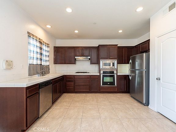 Beautiful Home in a gated community. 4 bedrooms plus bonus room, 2.5 bathroom single family home. Spacious living room with an abundance of windows and open-plan dining room combo. Gourmet kitchen with breakfast nook, stainless steel appliances (new built-in microwave) , refrigerator, pantry, and recessed lighting. Romantic master suite features 2-mirrored closets, walk-in closet, dual vanities, soaking bathtub, and a full-sized shower. Beautiful wood floor in master bath and family room. Central AC and inside laundry room. 2-car direct access garage long driveway. Professionally landscaped yards with fruit trees. Resort-style amenities include swimming pool, tot lots, parks, and sports courts. Located in a private gated community with nightly security patrol. Close to UC Riverside. Easy access to freeway and shopping center. New paint on garage door and front door.
