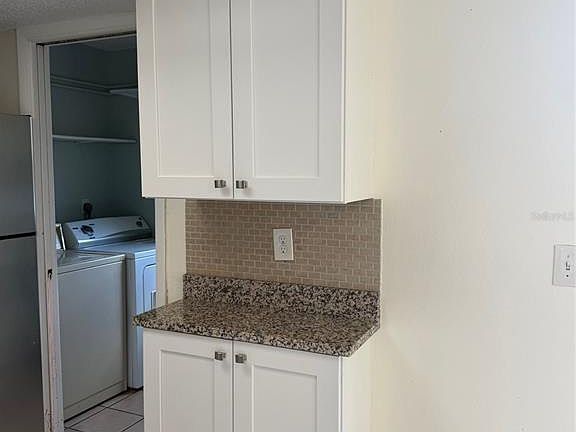 Freshly renovated kitchenGranite countertopsIndoor laundry roomBright and inviting spaceStylishly remodeled bathroomModern cabinetryUncovered backyard patio