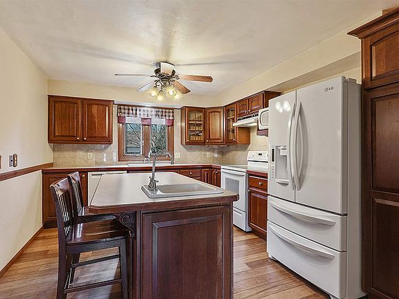 Beautiful, well maintained home featuring a sunken family room with a brick fireplace, built-ins, and patio access to large fenced in backyard. The kitchen boasts a center island with sink, an abundance of cabinets, and tile back splash. Main floor master suite with updated master bath. Finished lower level with huge additional family room, wet bar, and updated full bathroom with a walk-in tile shower.