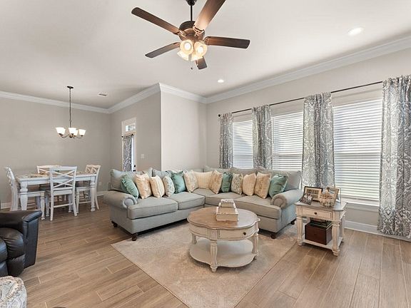 This beautifully maintained home offers modern comfort and thoughtful upgrades throughout. Featuring an open, split floor plan and hard surface flooring in every room, this home is as functional as it is stylish. The spacious living area flows seamlessly into the kitchen and dining spaces—perfect for entertaining or family gatherings. The kitchen boasts upgraded countertops, custom hardware, and abundant storage. Additional upgrades include interior wall insulation, sealed grout, and custom-built shelving in the laundry room, pantry, and garage and a sprinkler system. The master suite offers a peaceful retreat with a walk-through closet that connects directly to the laundry room for added convenience. Across the home are two spacious guest bedrooms. Step outside to enjoy a large covered patio and a fully fenced backyard with 8-foot fencing on three sides, a double gate for easy drive through access. The backyard also includes a sink, generator hookup and storage space for added practicality. Located in a quiet, newer subdivision, this immaculate home is move-in ready and designed for comfort, efficiency, and low-maintenance living. Flood zone X.