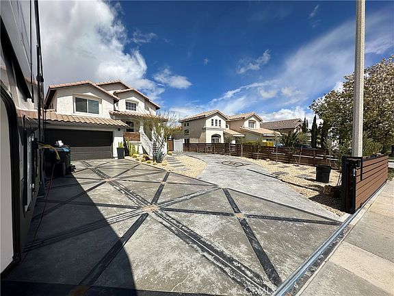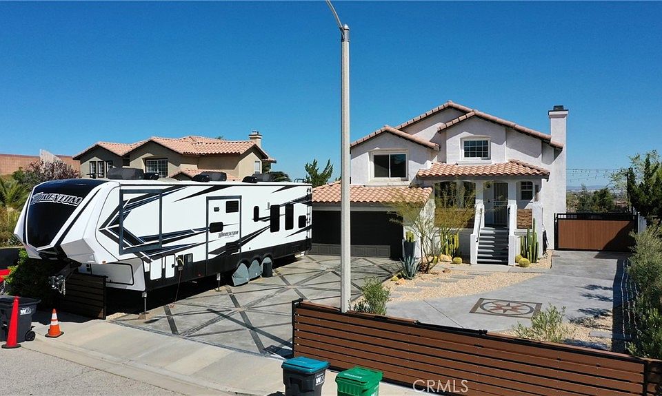 Nestled in a prime location, this turnkey home offers breathtaking views of Palmdale, Lancaster, and the Tehachapi mountains, ensuring a serene and picturesque living experience. Recent upgrades transform this property into a modern oasis, boasting a new central air heating system, RV access with 50 Amp hook-up in both the front and backyard—customized to accommodate any RV height with pole’d string lighting, ensuring functionality meets ambiance. The home's exterior dazzles with permanent remote-controlled color-changing LED holiday lighting, low-voltage timered landscape lighting, and is pre-wired for a POE camera system for added security and convenience. Aesthetic and functional enhancements include custom decorative concrete, drought-tolerant landscaping with a timered drip system, a custom BBQ/bar area with a built-in waterfall and stock tank pool, and a gated dog-run. Security is heightened with new custom composite-wood fencing and gates. Inside, uniform "black trim" aesthetics harmonize with new faux-blinds, and comprehensive remodeling of the kitchen, restrooms, and bedrooms elevates the home's interior to match its stunning exterior. This property is a true embodiment of sophistication, comfort, and meticulous attention to detail, designed to cater to both entertainment and tranquil living.