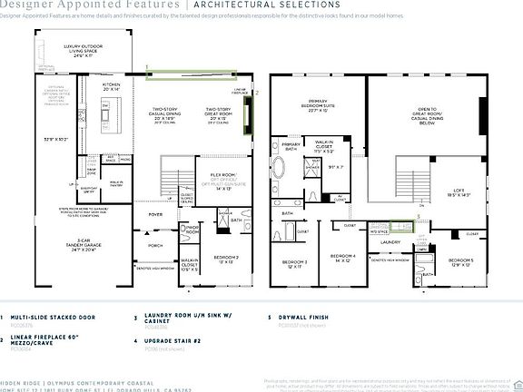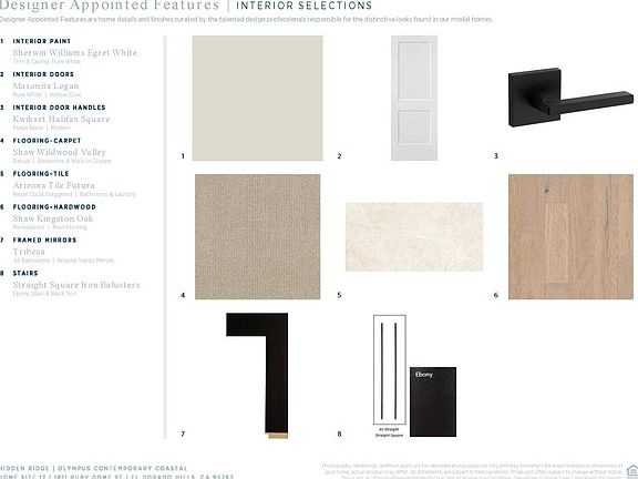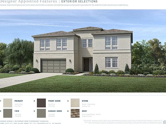 Tucked into the rolling hills of El Dorado, this home offers a refined take on California luxury within the stunning Olympus floor plan. The kitchen, thoughtfully composed with level 4 Sarria stained cabinetry, a bold ebony-stained island, and 3" mitered-edge Taj Mahal Quartzite, is both a visual statement and a gathering space. Throughout the rest of the home, AZT Linen Polished Quartz provides a seamless look that balances elegance with durability. A full JennAir 48" appliance package, including a gas range, hood, microwave, and dishwasher, adds to this chef's kitchen. Matte black fixtures, a vault apron front sink, and a Terra Nova chevron backsplash bring balance and texture, while stacked 10 cabinets and glass uppers lend an air of custom craftsmanship. Sunlight spills through the south-facing windows into the great room, warming the wide-plank Kingston Oak wood floors that stretch from the foyer through nearly every living space. A staircase trimmed in ebony-finished railings and iron balusters adds sculptural beauty, while touches like soft-close cabinetry and Tribeca-framed mirrors create a daily rhythm of quiet luxury. This is a home designed to be felt as much as it is admired, where every element tells a story of thoughtful elegance. Disclaimer: Photos are images only and should not be relied upon to confirm applicable features.