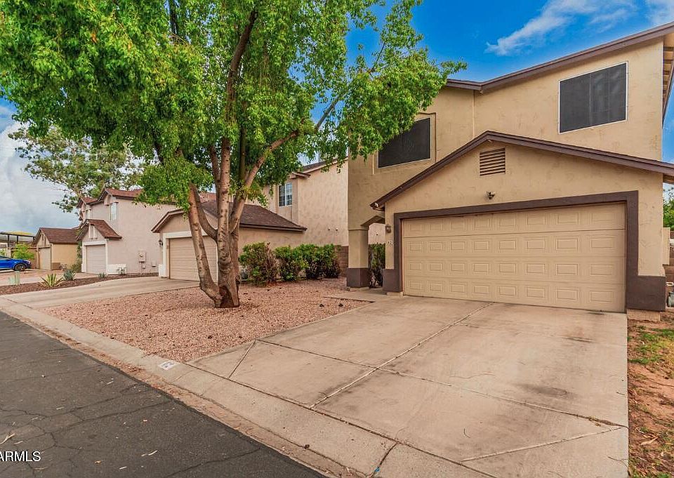 RENTAL AVAILABLE FOR MOVE IN ASAP. This beautifully maintained 4-bedroom, 2.5-bath home sits in the Vista Village II community & offers the perfect blend of comfort & convenience. The open floor plan features a cozy living room with a wood-burning fireplace, a spacious family room, & an inviting kitchen with a breakfast bar, pantry & dining area. Upstairs, you'll find all bedrooms including a generous primary suite with dual sinks, soaking tub, walk-in shower & large closet. The upstairs laundry includes a washer and dryer. Enjoy outdoor living with a private backyard featuring a mix of desert landscaping and grass, plus a covered patio great for relaxing or entertaining. The community offers a pool, spa, sport courts
