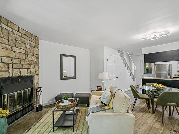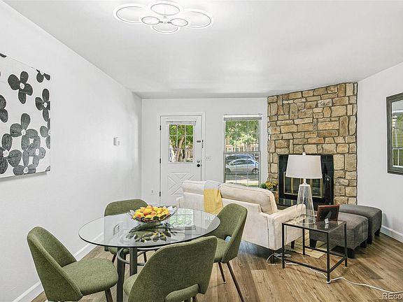 Move in ready townhome with all the bells and whistles ready for you to call it home! Living room is anchored by groovy stone fireplace. Dining room adjacent to the kitchen, kitchen has been updated with granite counters and stainless steel appliances. Kitchen is open to the public space which gives the space ideal flow for day to day living. Brand new flooring and paint throughout! Upstairs you will find your primary bedroom, a secondary bedroom and full bath. Primary bedroom has good closeting and is large enough for a king sized suite of furniture. Natural light pours in from the skylights. Secondary bedroom is a great guest space or office. Full bathroom features a new vanity. The basement features great flex space--perfect for your home gym, home office, guests or media room! A 3/4 bath serves the basement and/ or your guests. Laundry room is functional and offers good storage. Outside there is a private yard perfect for a bistro table to dine al fresco. Out the gate to nice walking paths throughout the community. HOA offers a community pool which is just steps away! Newer AC will keep you cool this summer. Location is central, easy commute into downtown or DTC, plus lots of amenities nearby. Opportunity knocks to enter into the Denver market at a great price point! Don't miss it!