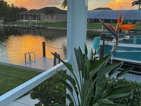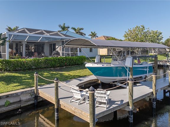 AMAZING LOCATION! Fabulous 3 bedroom, 3 FULL BATH GULF ACCESS POOL HOME in highly sought after SW Cape awaits you! Home is surrounded by new estate like homes, conveniently located near dining, shopping, Cape Harbor and Tarpon Point. Within walking distance to popular CAPE restaurants such as Lobster Lady, Ceno, Prime 239, and Amore. Double custom etched glass doors accent the entrance to this HUGE light and bright OPEN floor plan! Home features formal dining room, formal living room, large kitchen with durable quartz countertops, stainless steel appliances, and a fun beachy backsplash. Breakfast bar spilling onto a great room all amplified with soaring 12 ft ceilings and vanishing sliders creating AWESOME water views with indoor outdoor living vibes. Luxury Vinyl through out. Master suite has TWO walk in closets, separate tub and large walk in tile shower. The home also has a Junior Master suite complete with it's own private FULL bathroom, perfect for guest. Guest room has ample closets and sits over the canal for spectacular water views. Large heated pool comes complete with water fall overlooking 125 ft canal, wrap around captains walk deck and 10k lb lift with canopy. Only 2 bridges to OPEN WATER. Metal roof is an insurance saver! Hurry- home won't last long!