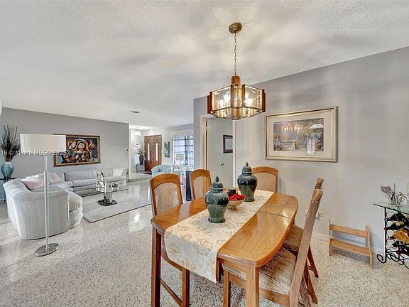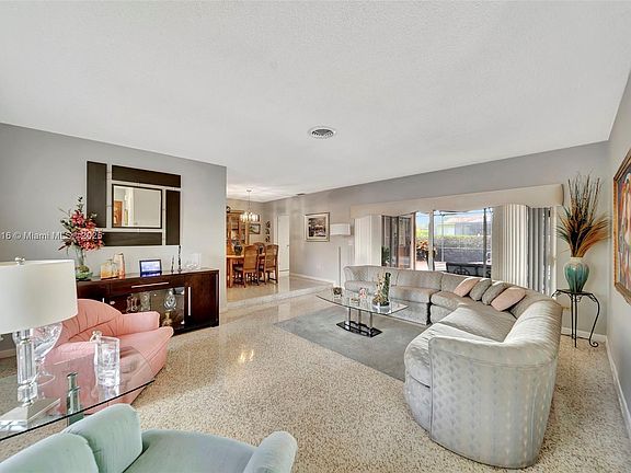 Step into this beautifully maintained home, where charm and functionality blend seamlessly. Boasting three spacious bedrooms plus a generous den that easily serves as a fourth bedroom, it is not a converted garage, there is a one car garage. The stunning, mint-condition Terrazzo floors add timeless elegance, while the expansive living area is perfect for entertaining. The updated, eat-in kitchen provides ample space for cooking and gathering, and the huge covered backyard patio—complete with a stunning arched screen enclosure over the sparkling swimming pool—ensures year-round enjoyment. A durable 50-year barrel tile roof (installed in 2003) and a newer A/C. Nestled on a quiet street, this home is truly a gem. The owner is motivated and has priced it fairly, but all offers are welcome!