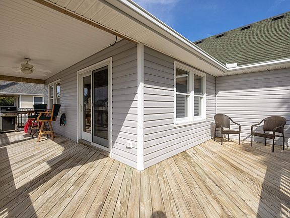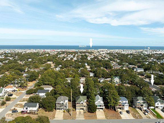 Located in X Flood Zone! You will love the layout of this four bedroom, three and a half bath, including a midlevel den. Centrally Located in the heart of Kill Devil Hills, just one block off of Bay Drive Sound front! Imagine the Sunsets each night. The property has a reverse floor plan, with the Great Room, Kitchen, Ensuite Bedroom and a powder bath all on the third level. The open deck faces South West and covered deck faces West towards the Sound with some Sound views. The second level offers three additional bedrooms, two baths, den with wet bar, and laundry. The SE bedrooms has a private bath, the other two bedrooms shares the hall bath. The Large Covered Porch can be access from the mid-level deck. The ground level, includes a large Garage, work shop and storage space that includes a second refrigerator. When the owner purchased the property in 2016, they converted the North carport into a garage plus additional workspace. Which included the extra benefits of having a dry entry from the ground level. Enjoy the amenities, of the bike trail all along Bay Drive. Take a stroll down to the West Third Street Public Estuarine Access where you can enjoy front row sunsets. Close to NC Wildlife Access at Dock Street, includes Boat Launching area with parking for that purpose. Close to Shopping, Restaurants Entertainment and all the amenities the Outer Banks has to Offer. Just a short distance to the OBX Beach Access in Kill Devil Hills. The Heat in Air system was replaced in June of 2021. Water Heater Spring of 2023, warranty expires May 2029. Seller had the septic pumped in August of 2023. Prior to placing on the market, the seller had the house professionally cleaned, power washed the house and decks, and the carpet cleaned. The interior walls and carpet could use updating. Owner has never used Gas Fireplace there is no gas tank at the property, it would be up to buyer/agent to determine operation of the gas fireplace, and provide propane gas for any inspections. The Property is being sold as is.