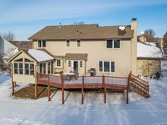 This well-maintained 2-story home features plenty of upgrades throughout! The renovated Kitchen with Informal Dining area features Granite countertops, dual wall ovens, stainless-steel Jenn-Air appliances, elegant hardwood floors, a gorgeous tile backsplash and has access to the back deck. The bright and open Living Room features a brick, wood-burning fireplace and custom built-ins. The main-floor also features a Mud Room with built-in boot bench and coat rack, an open Family Room with bay window, a charming Formal Dining Room, and an incredible Sun Room which opens to the private deck. 4 Bedrooms and 2 renovated Bathrooms upstairs, including the Master Suite which features a large walk-in closet and a private Master Bath with dual-sink vanity and beautiful tile walk-in shower. Lower-Level has an huge Amusement Room with Bar area, updated Bathroom, large storage room and Laundry/Utility Room. Extended Garage with large work bench. Located minutes from shopping, restaurants and more!