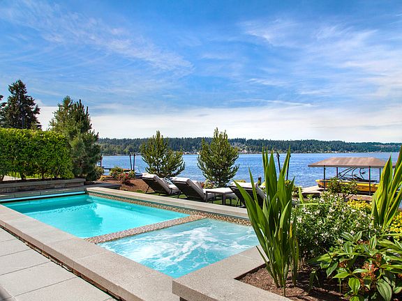 Extraordinary Brilliance on Lake Sammamish. A gated drive past lush gardens, leads to the remarkable 1.51 acre estate by Vassos Demetriou. Sited directly north, marvel at the sky & reflection on the lake as the sun rises & sets creating the perfect backdrop. Over 7,200 sq. ft. of unmatched detail: marble, granite, mahogany, zebra wood, stone. An entertaining paradise: pool, sport court, putting green, waterfalls, 168 ft of waterfront, private dock. Dramatic. Spectacular. Rare. There is no other!