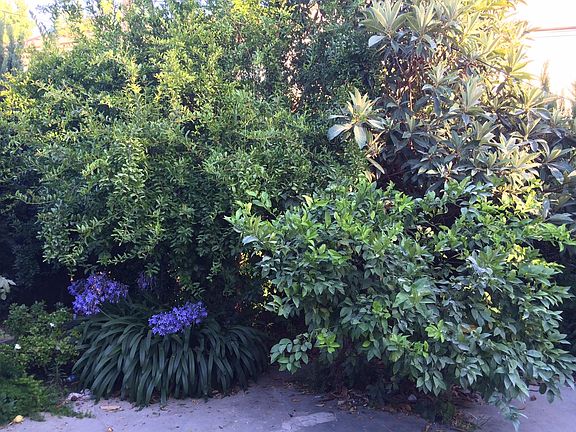 * New washing machine and dryer inside the house with a door to the backyard with beautiful mature fruit trees.